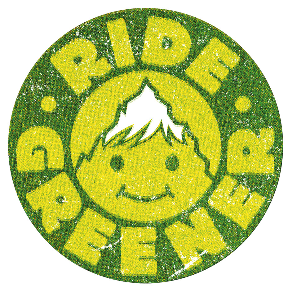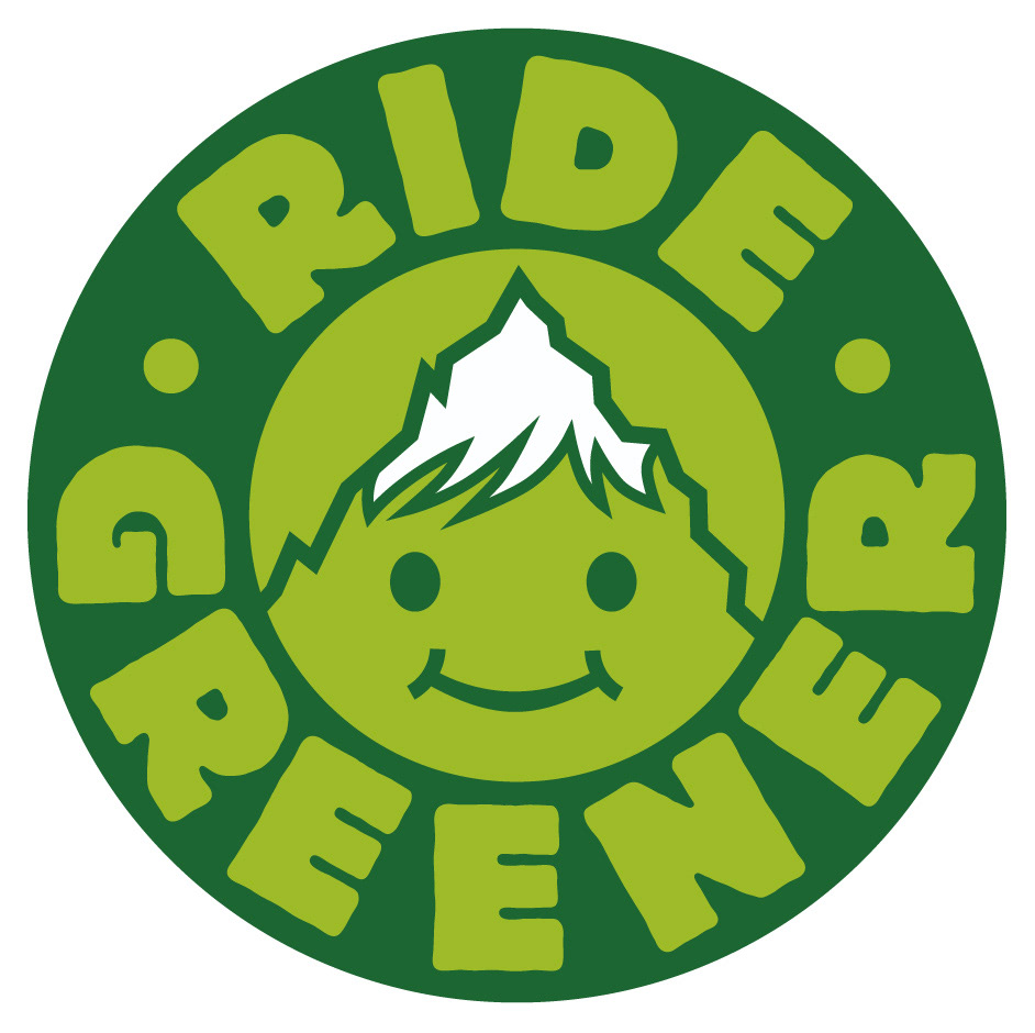 Logo for Ride Greener, an association that promotes climate friendly snowboarding and skiing as well as environmentally conscious conduct in the mountains.